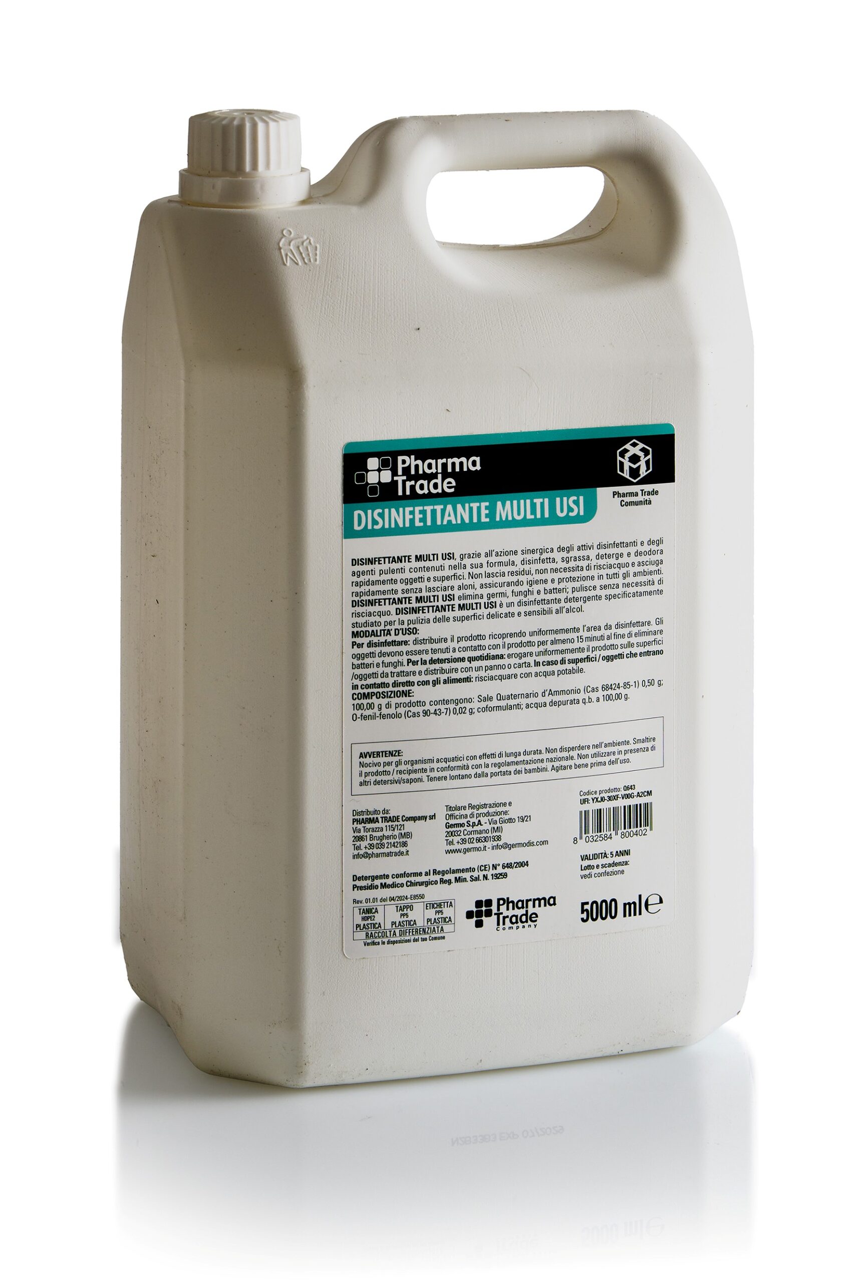 Disinfettante e detergente ambientale pronto all’uso, appositamente formulato per la disinfezione di bagni e superfici dure (formica, legno, plastica, pelle) del settore medico e della ristorazione.